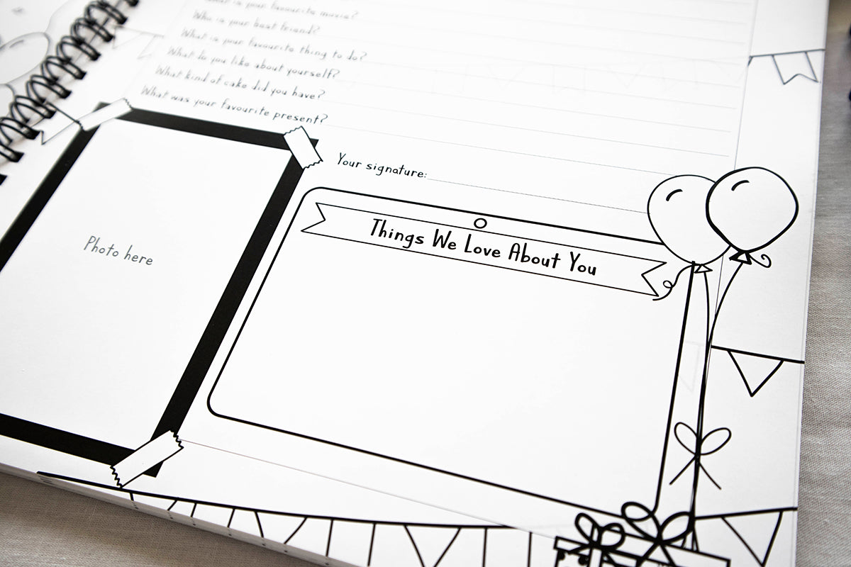 Leave black and white, or colour it in! Add your style to suit your child and give your child a book full of memories to treasure.