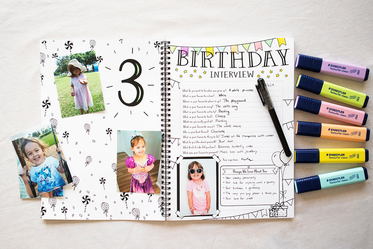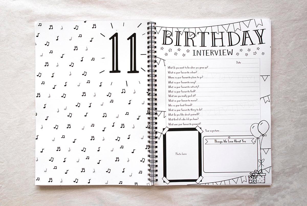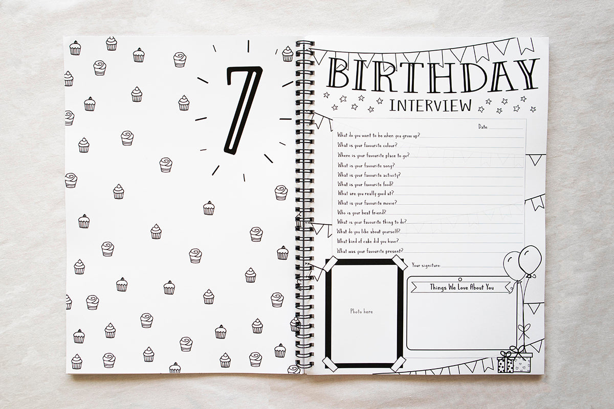Interview your child every year and write down both the hilarious answers and the sentimental ones. Plus see their progression of development as their answers change every year. There is even room to document their signature!